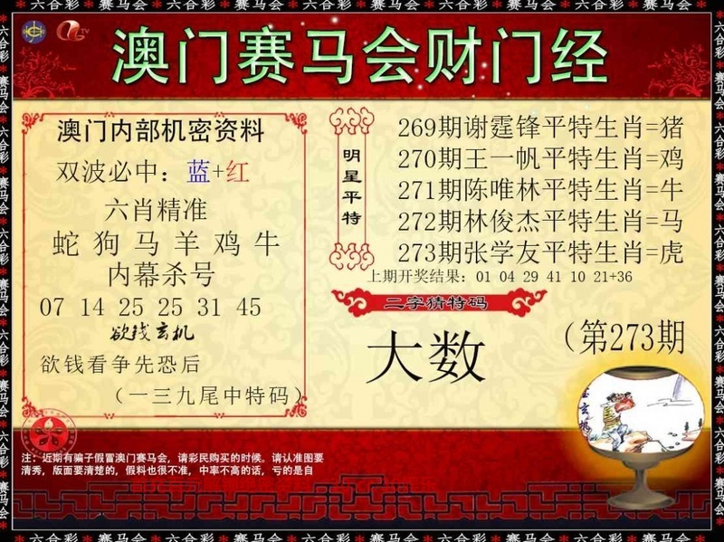 273期六肖 | 兔猪鸡马虎狗 | 开:虎04 |